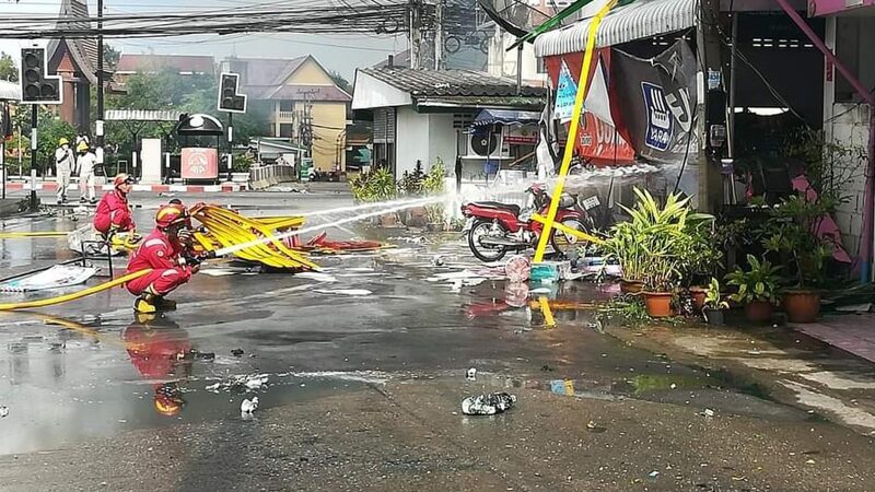 ระเบิดดังสนั่น ร้านขายปุ๋ย หน้าวัดพระธาตุศรีจอมทอง ไหม้วอดทั้งอาคาร