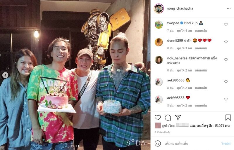 โพสต์ปริศนานั่งรถไฟขบวนนี้ไม่มีความสุขก็ต้องลงไปนั่งขบวนอื่นวันเกิดลูกๆพร้อมหน้าหอมพ่อสุดรัก โหน่ง ชะชะช่า หรือ ชูศักดิ์ เอี่ยมสุข โพสต์คลิป ลูกชายทั้งเดียร์ บุรี หรือ บุหรี่ และโบว์ลูกสะใภ้ ถือเค้กวันเกิดร้องเพลงอวยพรวันเกิดให้พ่อ พร้อมแคปชั่นว่า HBDนะโหน่ง ชะชะช่า ขอบคุณนะลูกๆทั้ง3ดูแลลูกค้าและร้านให้ดีมอบสิ่งดีๆให้กับลูกค้าที่มาร้านของเรา