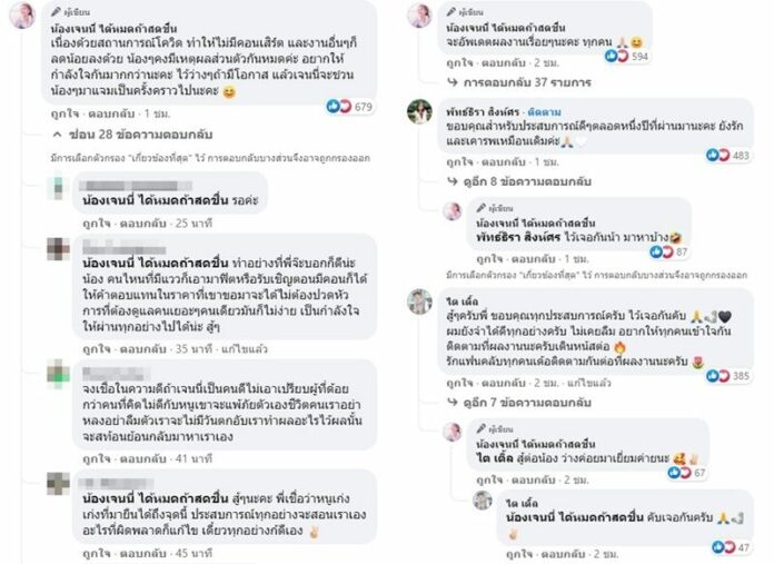 น้องๆแห่คอมเมนต์ลาขอบคุณสุดท้ายเหลือใครบ้าง จากปมดราม่าฉีกสัญญา ล่าสุด เจนนี่ ได้หมดถ้าสดชื่น หรือ รัชนก สุวรรณเกตุ โพสต์ตอนนี้ค่ายเหลือศิลปิน 4 คน คือ เจนนี่ , ลิลลี่ , หนูแพรว และ ทน แฮ๊ะ นอกจากนั้นได้ยกเลิกสัญญาหมดแล้วว่า