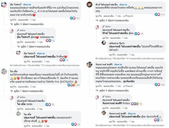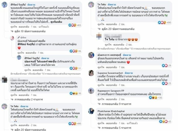 ขณะที่น้องๆที่ออกจากค่ายก็เข้ามาคอมเมนต์ขอบคุณต่างให้กำลังใจกัน อาทิ ขอบคุณสำหรับประสบการณ์ดีๆตลอดหนึ่งปีที่ผ่านมานะคะ ยังรักและเคารพเหมือนเดิมค่ะ , ๆครับพี่ ขอบคุณทุกประสบการณ์ครับ ไว้เจอกันคับ ผมยังจำได้ดีทุกอย่างครับ ไม่เคยลืม อยากให้ทุกคนเข้าใจกันติดตามที่ผลงานนะครับเดินหน้าต่อ รักแฟนคลับทุกคนเด้อติดตามกันต่อที่ผลงานนะครับ เป็นต้น