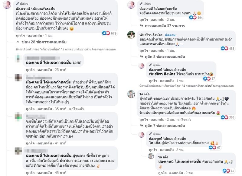 ขณะที่น้องๆที่ออกจากค่ายก็เข้ามาคอมเมนต์ขอบคุณต่างให้กำลังใจกัน อาทิ ขอบคุณสำหรับประสบการณ์ดีๆตลอดหนึ่งปีที่ผ่านมานะคะ ยังรักและเคารพเหมือนเดิมค่ะ , ๆครับพี่ ขอบคุณทุกประสบการณ์ครับ ไว้เจอกันคับ ผมยังจำได้ดีทุกอย่างครับ ไม่เคยลืม อยากให้ทุกคนเข้าใจกันติดตามที่ผลงานนะครับเดินหน้าต่อ รักแฟนคลับทุกคนเด้อติดตามกันต่อที่ผลงานนะครับ เป็นต้น